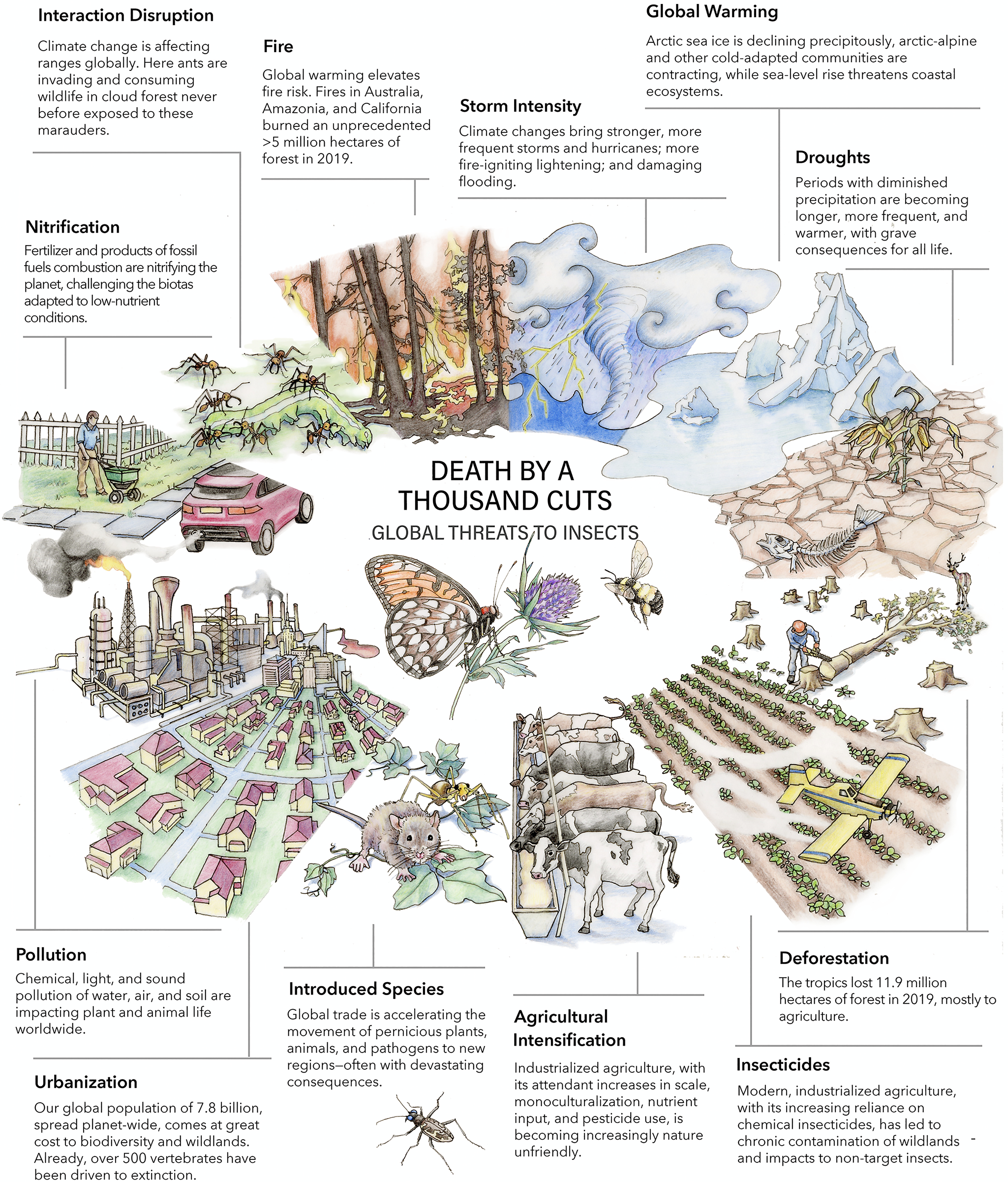 What happened to the insects this year? Years ago I saw armies of ladybug larvae emerging from under the siding and marching on the aphids and sometimes getting lost and marching into our kitchen window. Lacewings and Atteva aurea fluttered in and out of the house, and clouds of fireflies lit the wild tangled spots at dusk. Click beetles, junebugs, stin…